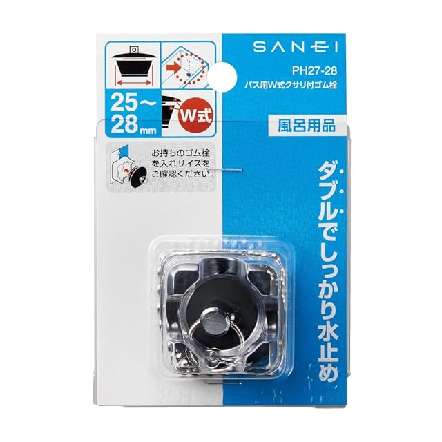 商品名:SANEI(サンエイ) バス用W式クサリ付きゴム栓 クサリ長さ670mm 4.5mm玉クサリ PH27-28
