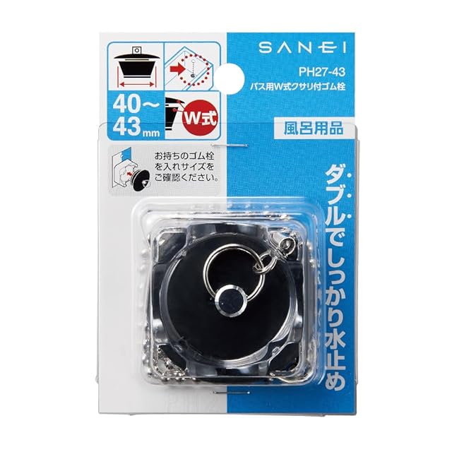 商品名:SANEI(サンエイ) バス用W式クサリ付きゴム栓 クサリ長さ670mm 4.5mm玉クサリ PH27-43