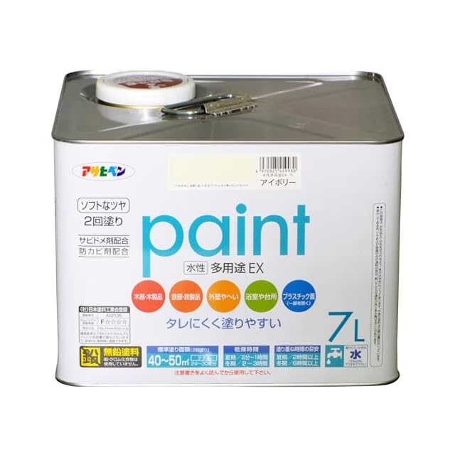 アサヒペン 塗料 ペンキ 水性多用途EX 7L アイボリー 水性 多用途 半ツヤ ソフトなツヤ 低臭 防カビ サビドメ剤配合 タレにくく塗りやすい シックハウス対策品 日本製 | emishop315