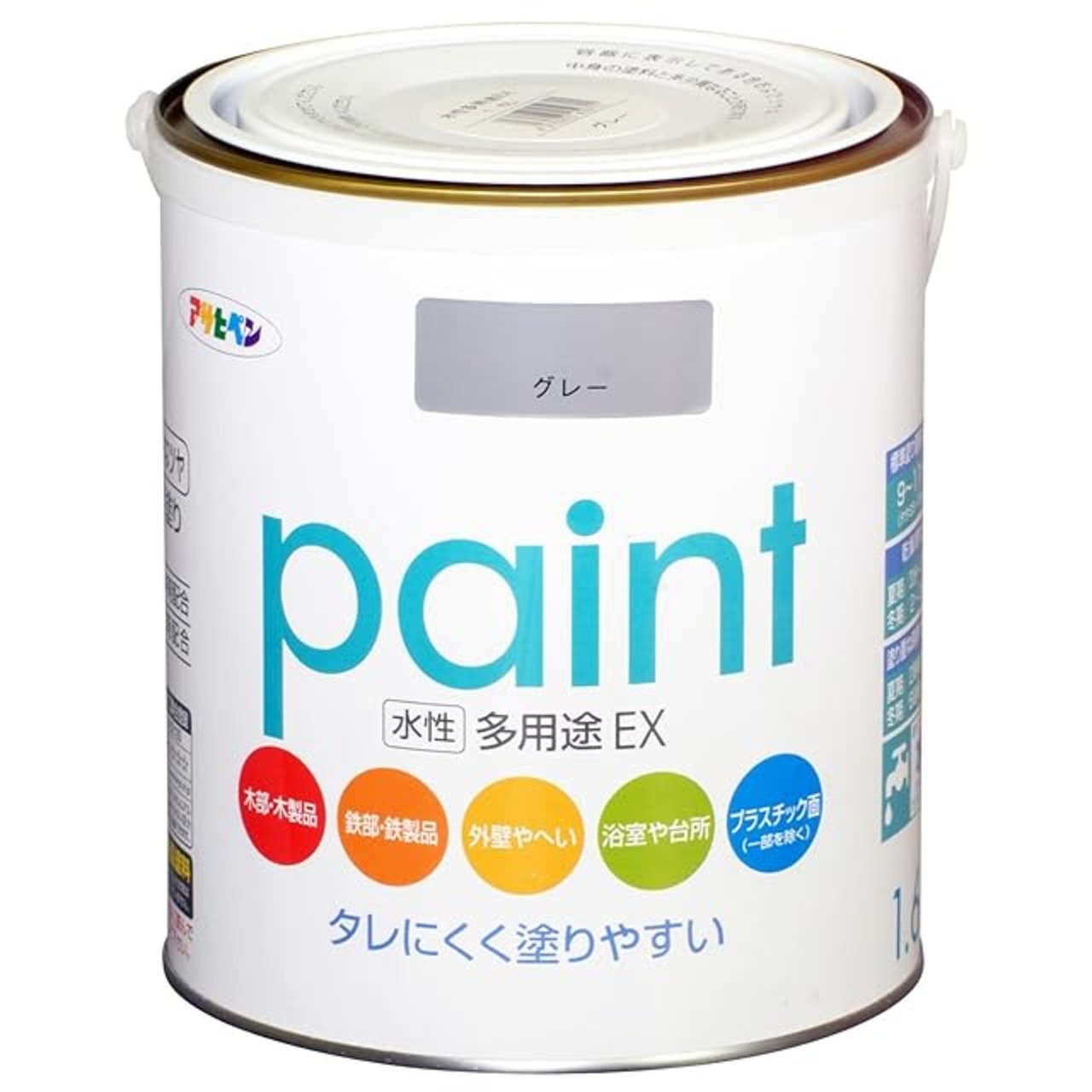 アサヒペン 塗料 ペンキ 水性多用途EX 1.6L グレー 水性 多用途 半ツヤ ソフトなツヤ 低臭 防カビ サビドメ剤配合 タレにくく塗りやすい シックハウス対策品 日本製 | emishop315