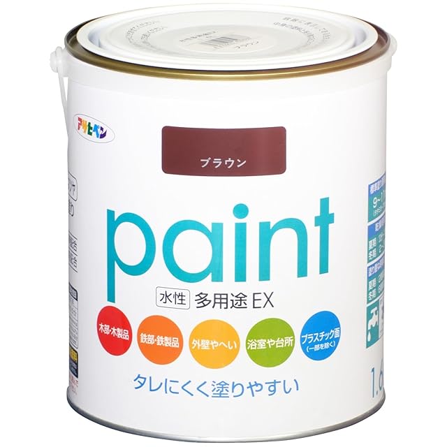 アサヒペン 塗料 ペンキ 水性多用途EX 1.6L ブラウン 水性 多用途 半ツヤ ソフトなツヤ 低臭 防カビ サビドメ剤配合 タレにくく塗りやすい シックハウス対策品 日本製 | emishop315