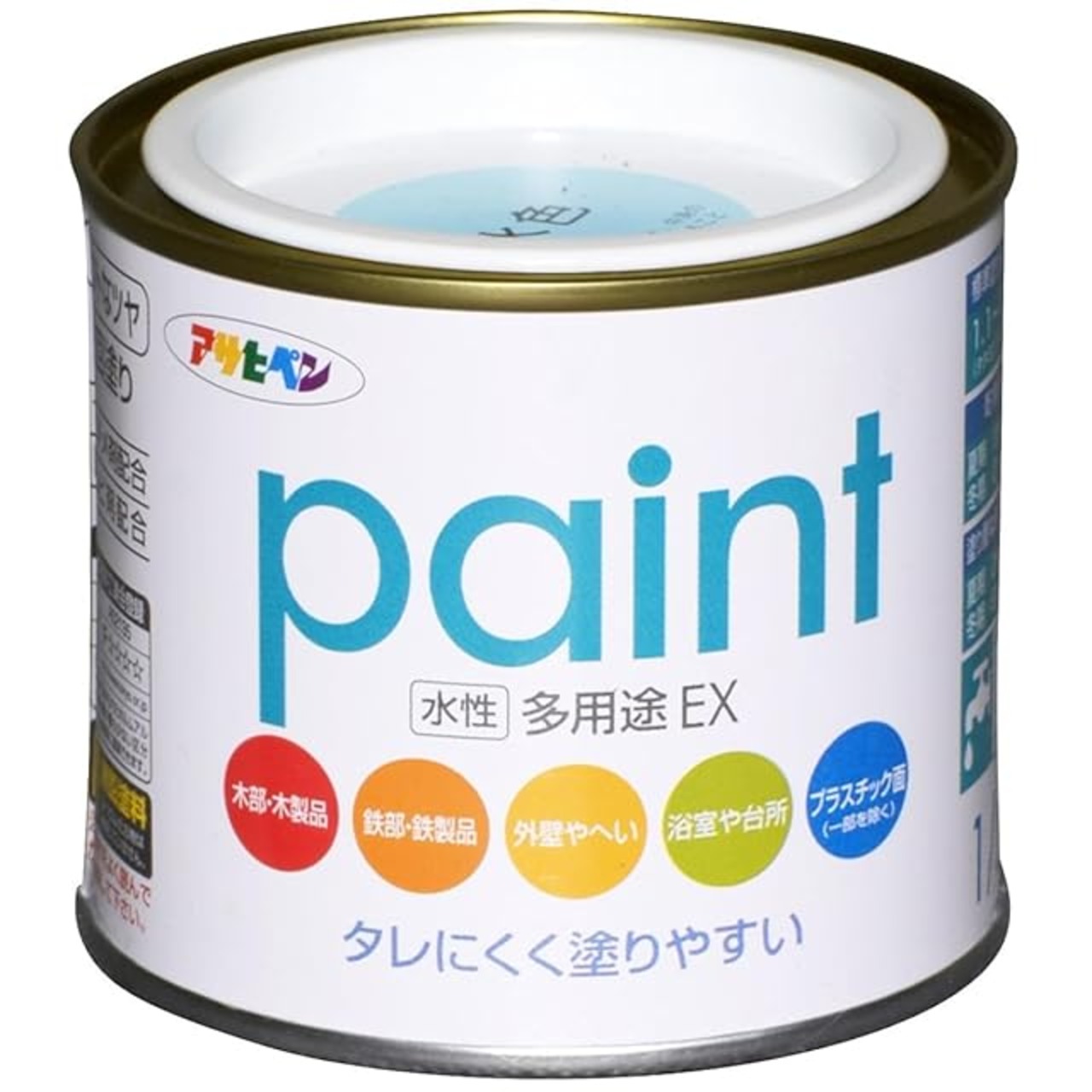 商品名:アサヒペン 塗料 ペンキ 水性多用途EX 1/5L 水色 水性 多用途 半ツヤ ソフトなツヤ 低臭 防カビ サビドメ剤配合 タレにくく塗りやすい シックハウス対策品 日本製