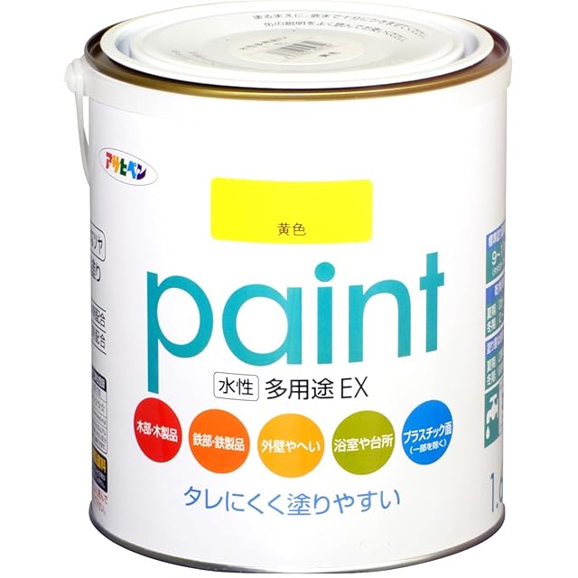 商品名:アサヒペン 塗料 ペンキ 水性多用途EX 1.6L 黄色 水性 多用途 半ツヤ ソフトなツヤ 低臭 防カビ サビドメ剤配合 タレにくく塗りやすい シックハウス対策品 日本製
