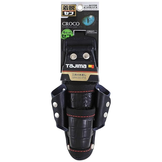 商品名:タジマ セフシステム 着脱式工具差し クロコ 4本差し 高強度でしなやかな高耐久合成皮革 SFKSG-P4 着脱楽々 ベルトに後から装着可能 腰道具の組み換えが簡単 使う道具だけを選んで装着 腰の負担軽減 工具の落下防止