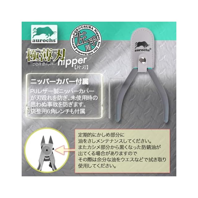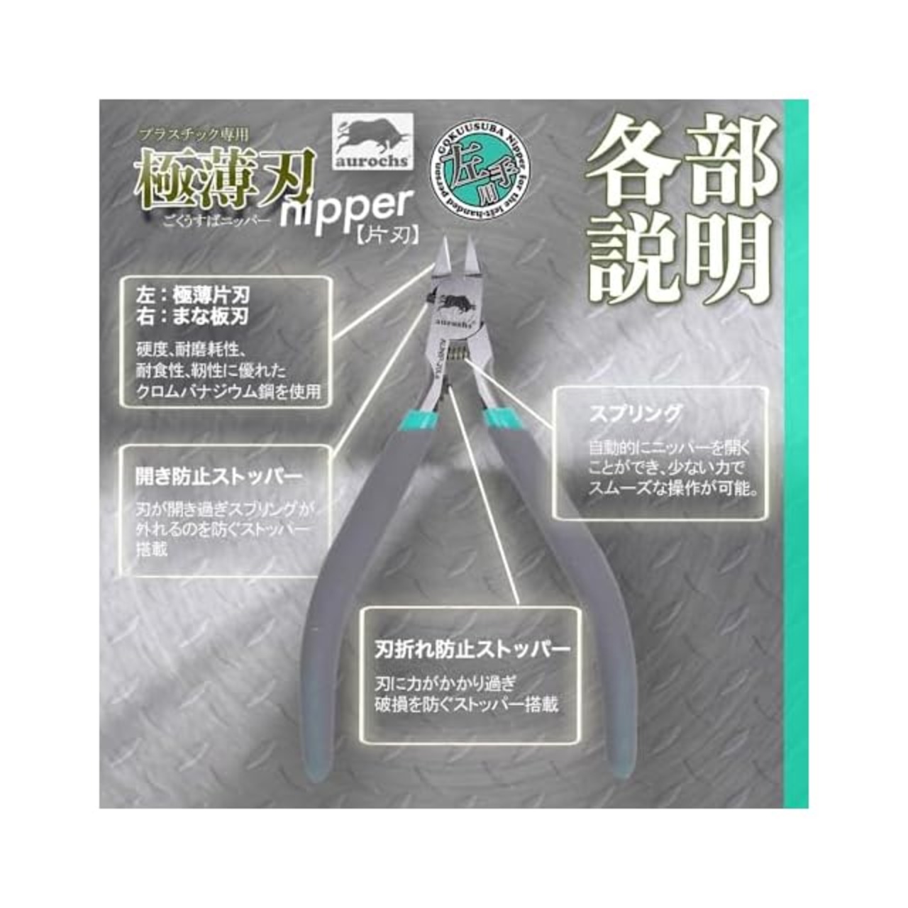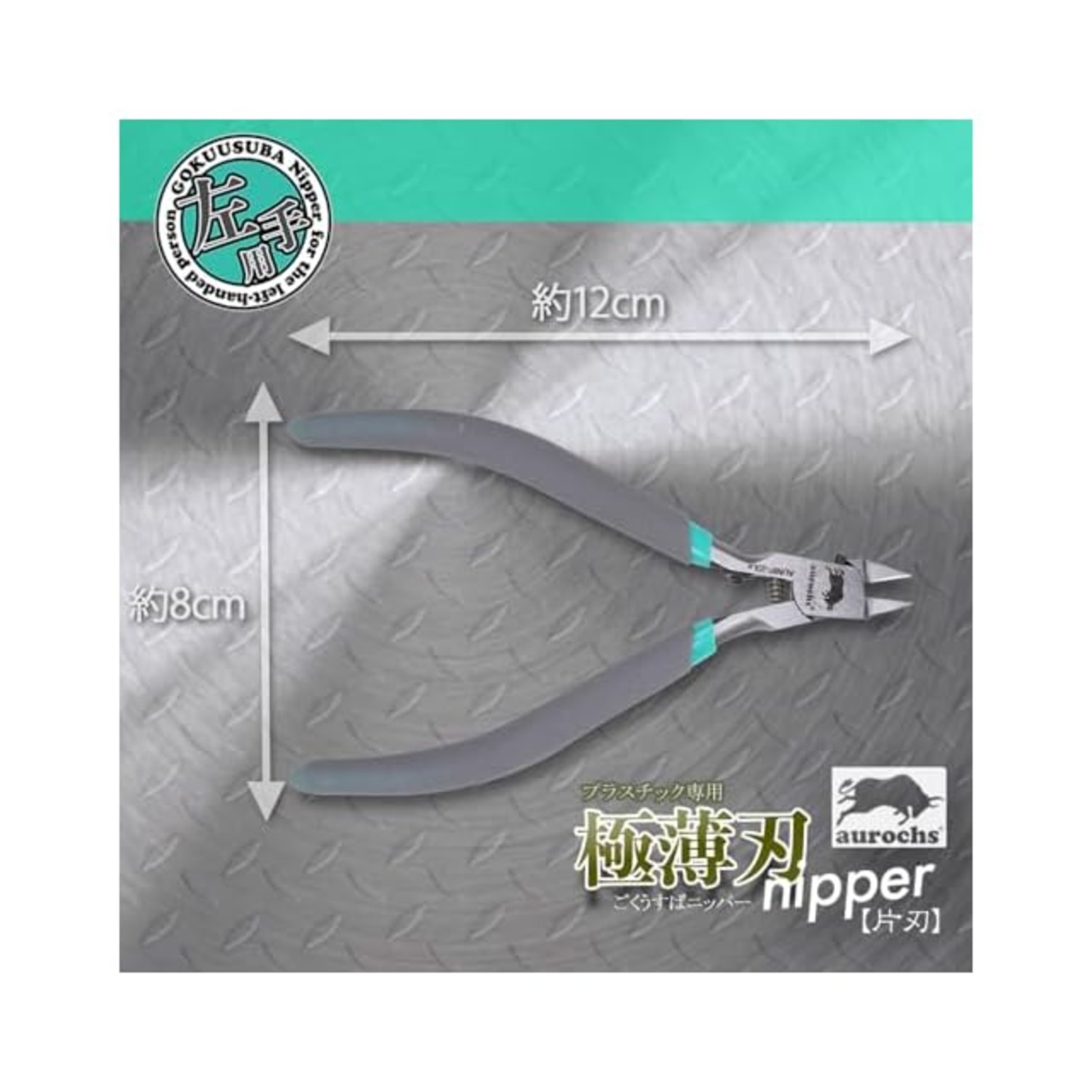 商品名:aurochs 極薄刃 ニッパー 片刃 精密 プラスチック専用 工具 プラモデル 模型 ゲートカット (グレー&ミント/左手用)