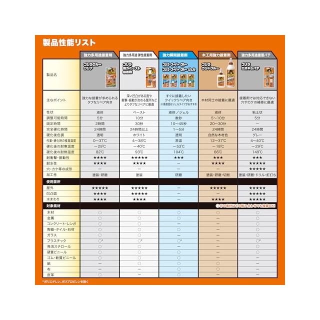 用途:屋内や屋外環境の凹凸面、平滑面、広い面、狭い面などあらゆる箇所での接着及び補修