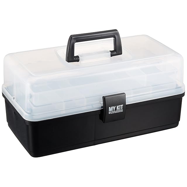 アイリスオーヤマ マイキット 幅37cm×奥行20cm×高さ18cm 工具収納 工具箱 ケース クリアブラック 万能ケース 収納ボックス ツールボックス DIY アウトドア キャンプ 小物入れ 2段式トレー | emishop315