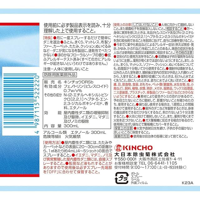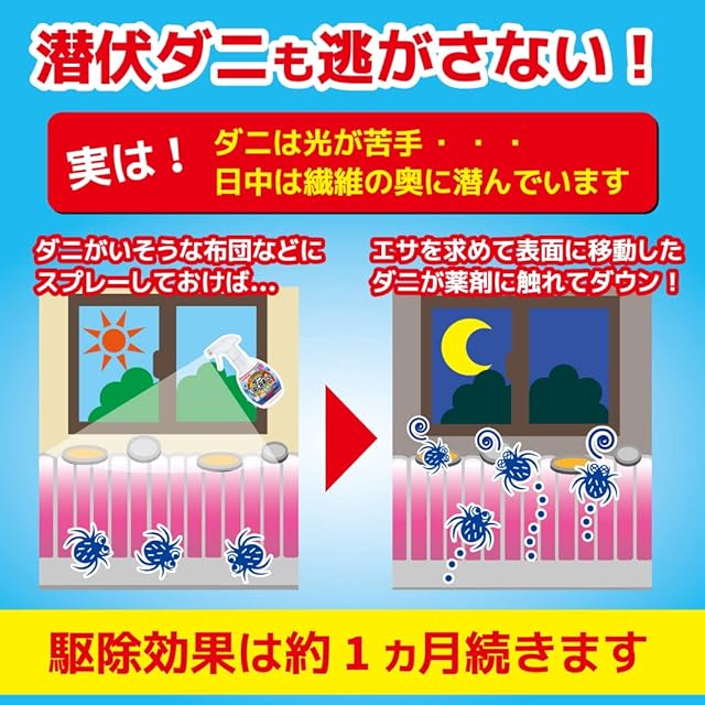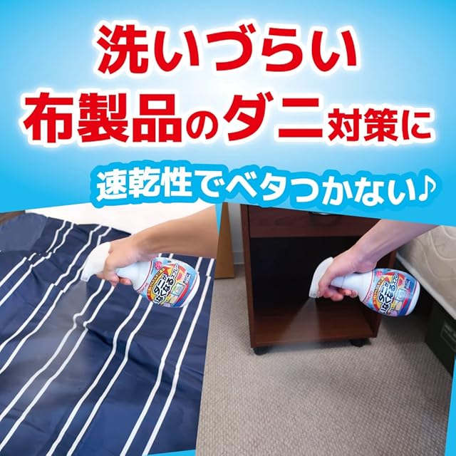 寝具やソファやカーペット等気になるところにスプレーする駆除+予防のW効果。