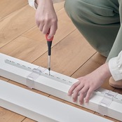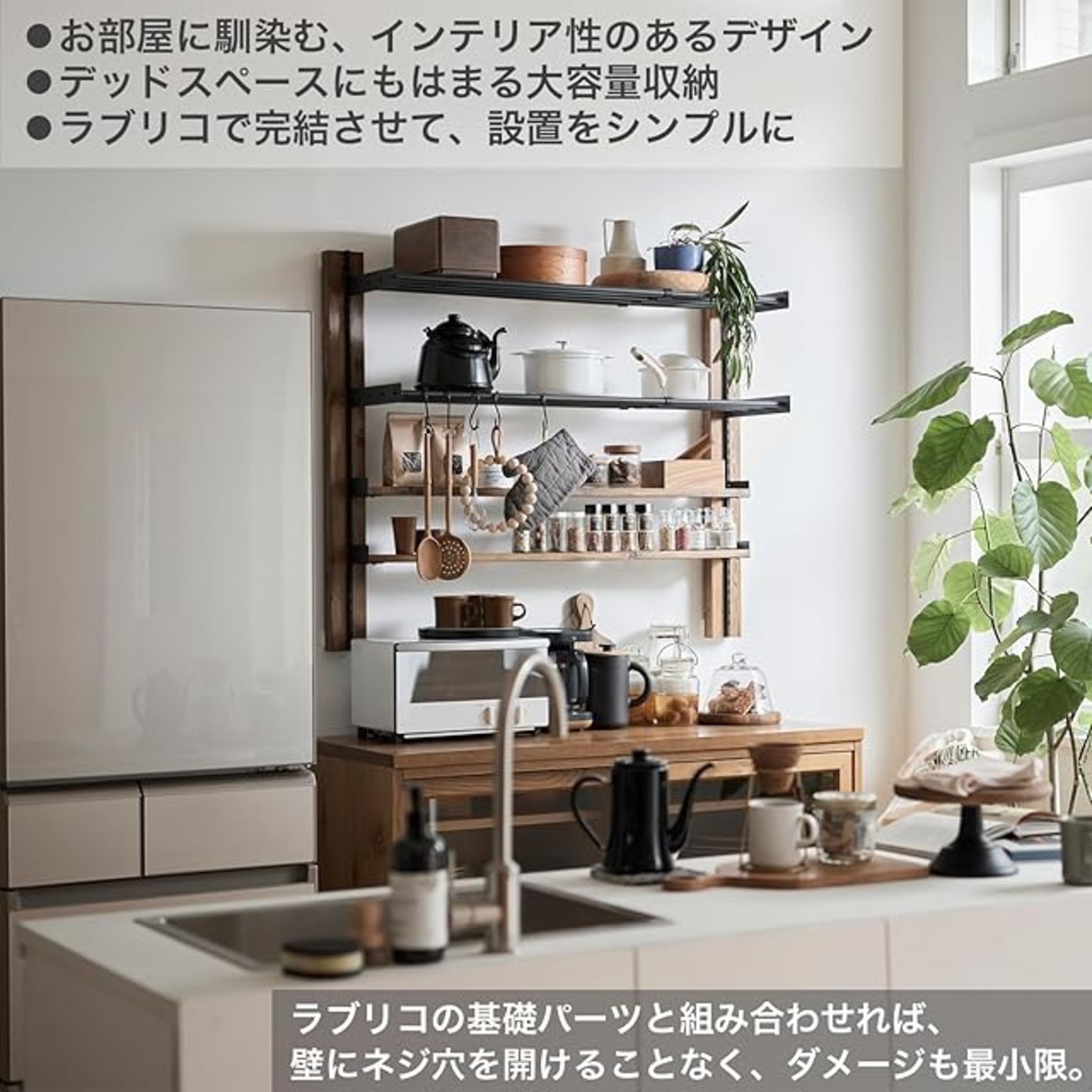 ラブリコの基本パーツ《2×4アジャスター》や《浮かせる家具ブラケット》と組み合わせれば、壁にネジ穴を開けることなくダメージを最小限にして設置できます。