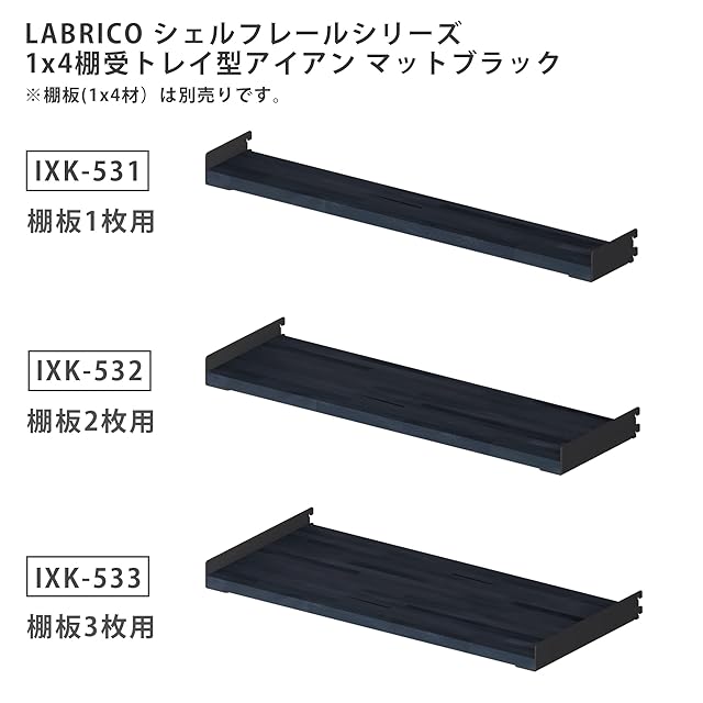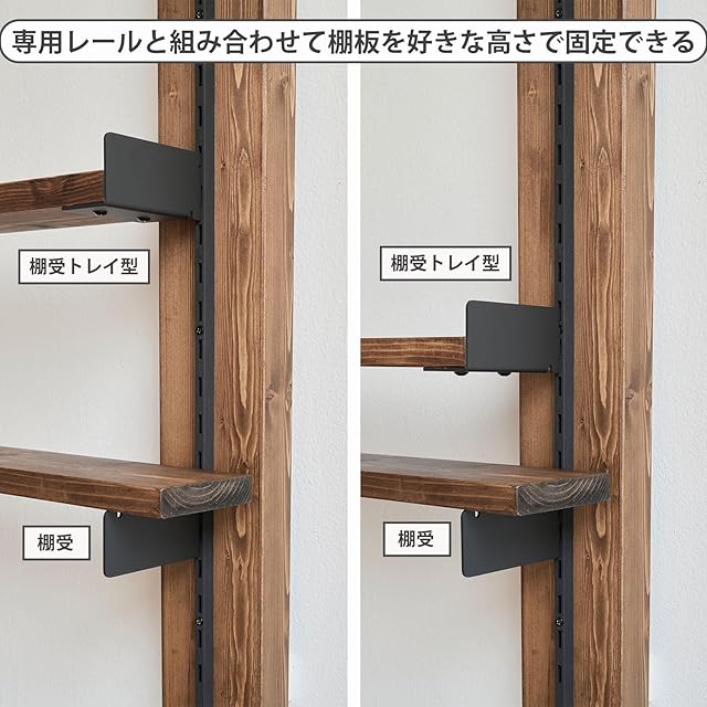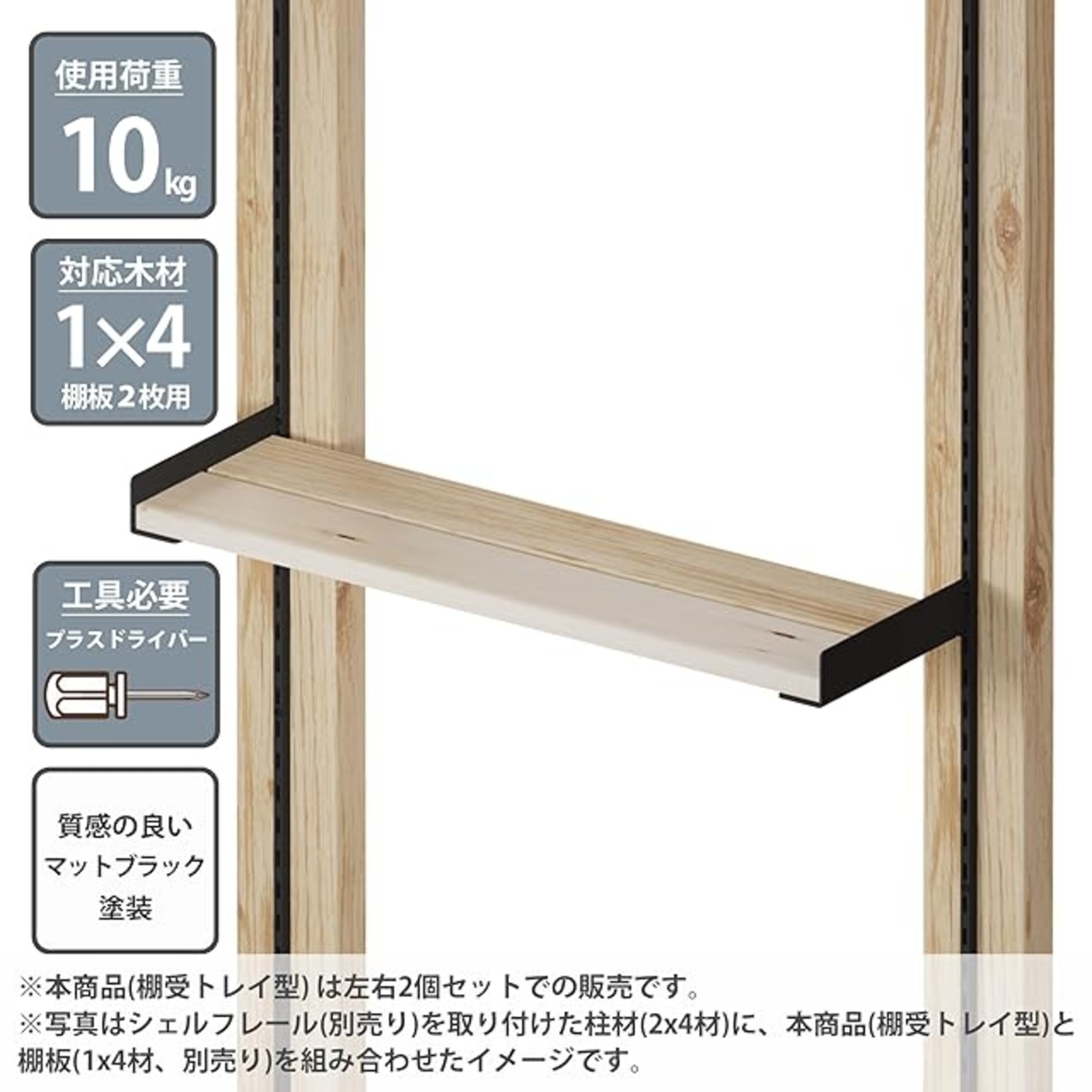 平安伸銅工業 LABRICO 棚柱 棚受け 棚受け金具 2枚入 トレイ型 (棚板2枚用) シェルフレール対応 最大使用荷重10kg アイアン 190 取付ねじ付き マットブラック IXK-532 | emishop315