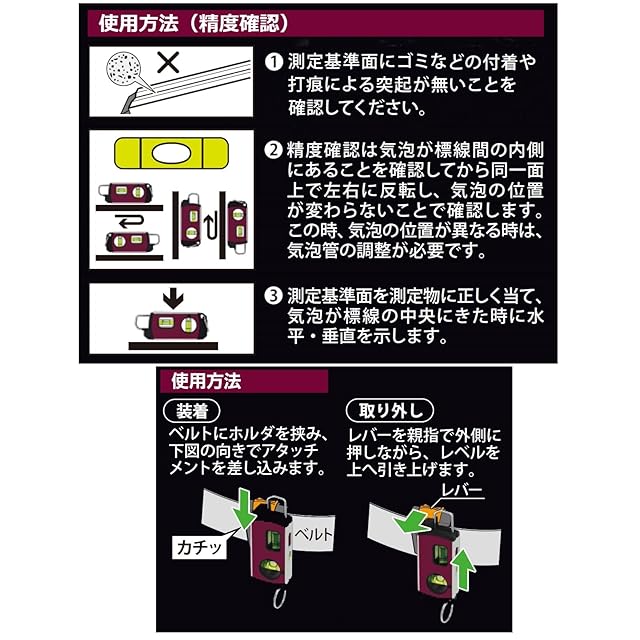 気泡管種類:アクリル気泡管 / 感度(mm/m=°):0.5=0.0286 / 精度(mm/m=°):±1.5=±0.0859以内
