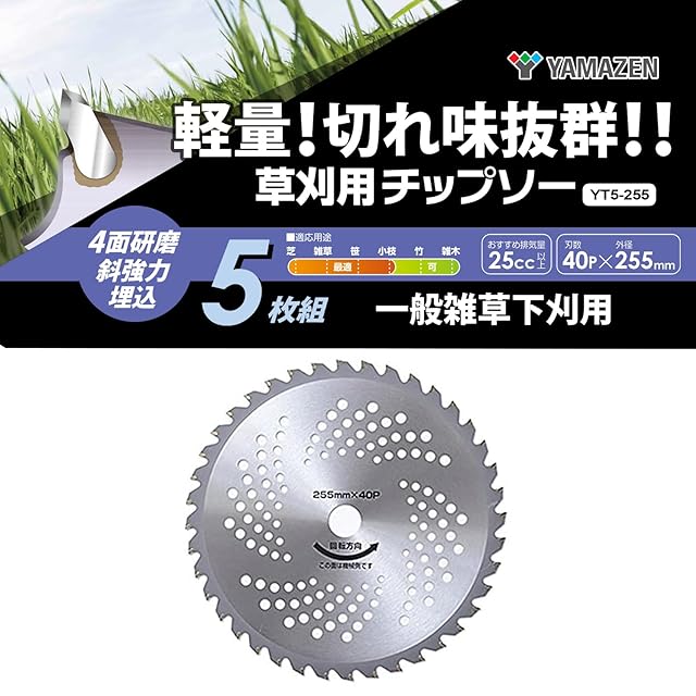 商品名:山善(YAMAZEN) 草刈用 チップソー 5枚組 外径255mm×40枚刃 替え刃 草刈機 刈払機 石 タイル 雑草 除草 荒地 YT5-255
