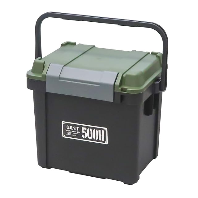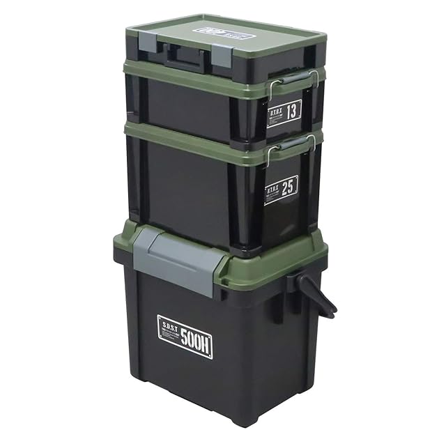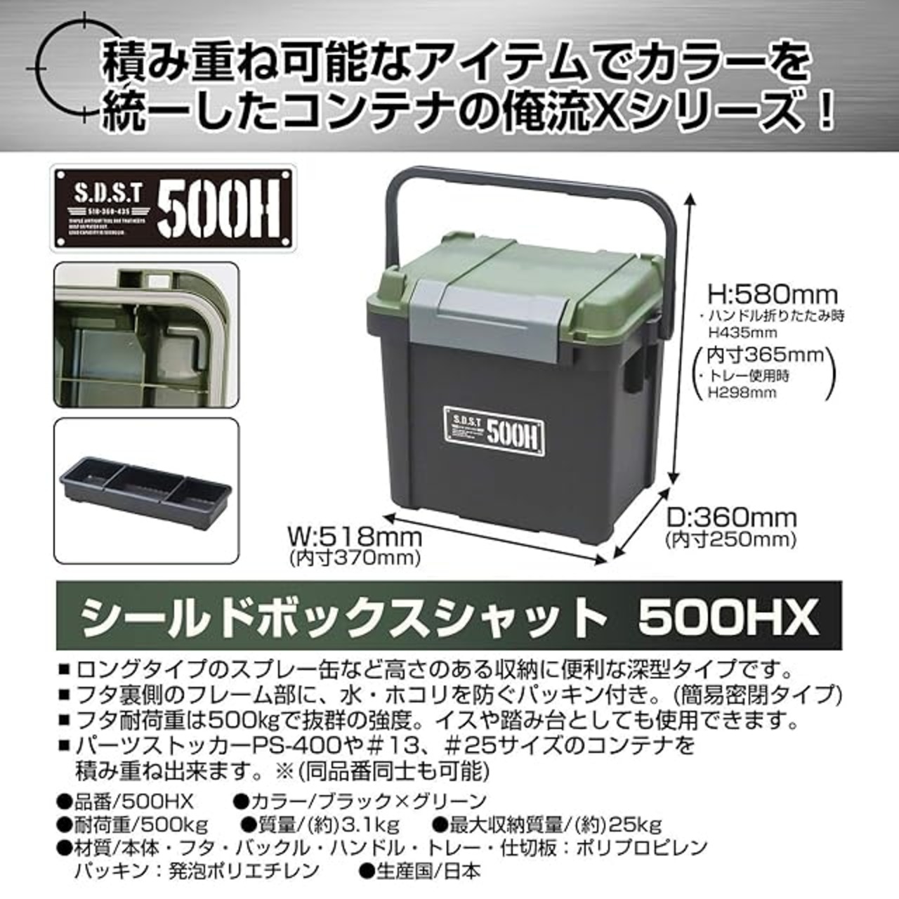 JEJアステージ(JEJ Astage) 収納ボックス 日本製 耐荷重500kg キャンプ 椅子 踏み台 工具箱 積み重ね [Xシリーズ シールドボックスシャット 500HX] ブラックグリーン 防災 幅52×奥行36×高さ43.5cm
