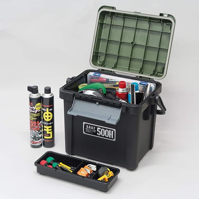 ロングタイプのスプレー缶など高さのある収納に便利な深型タイプの簡易密閉工具箱