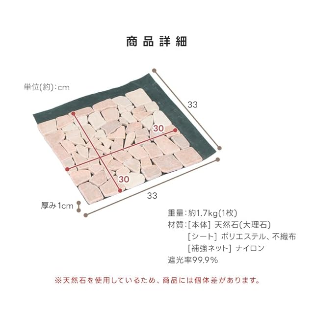 商品名:リビングアウト(Living Out) 天然石マット24枚セット 防草シート付き 敷くだけ - ピンク 本体: 奥行30.5cm 本体: 高さ1cm 本体: 幅30.5cm