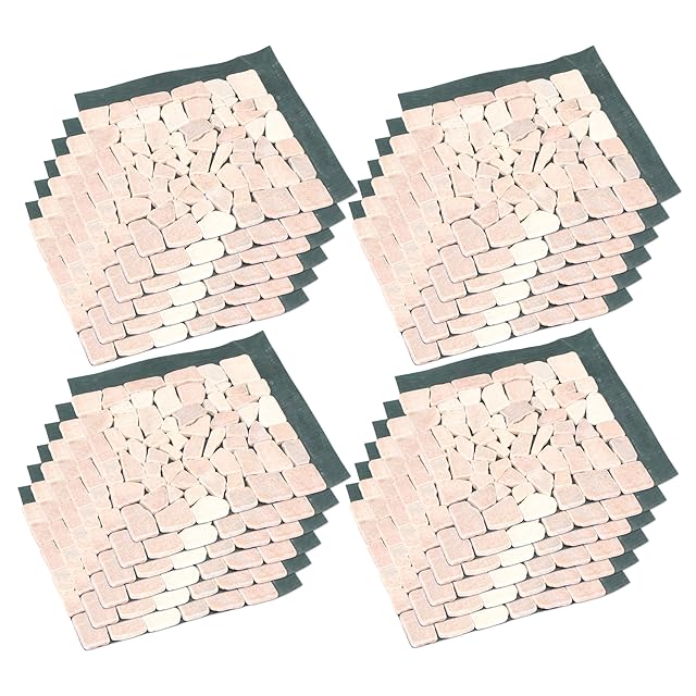 リビングアウト(Living Out) 天然石マット24枚セット 防草シート付き 敷くだけ - ピンク 本体: 奥行30.5cm 本体: 高さ1cm 本体: 幅30.5cm