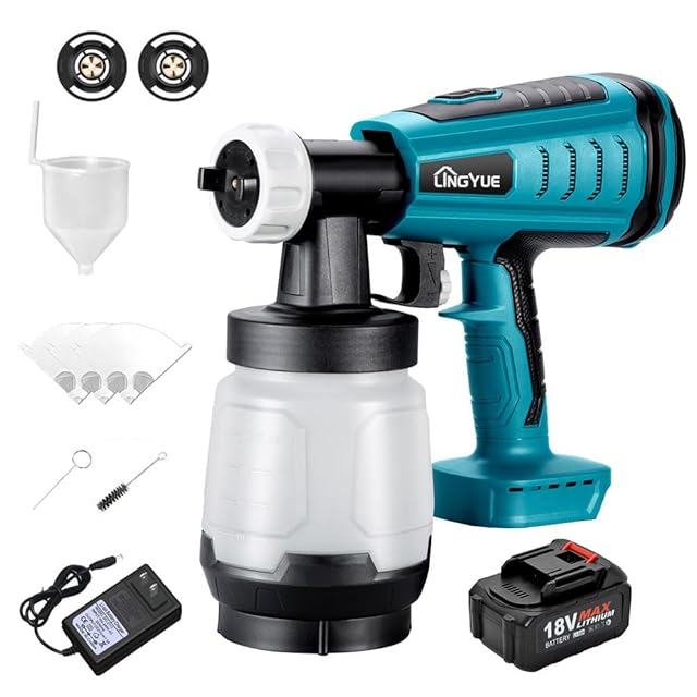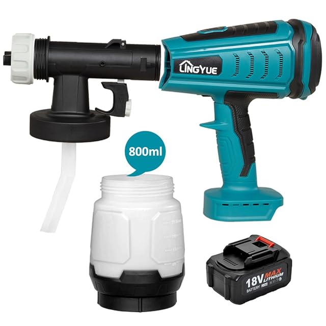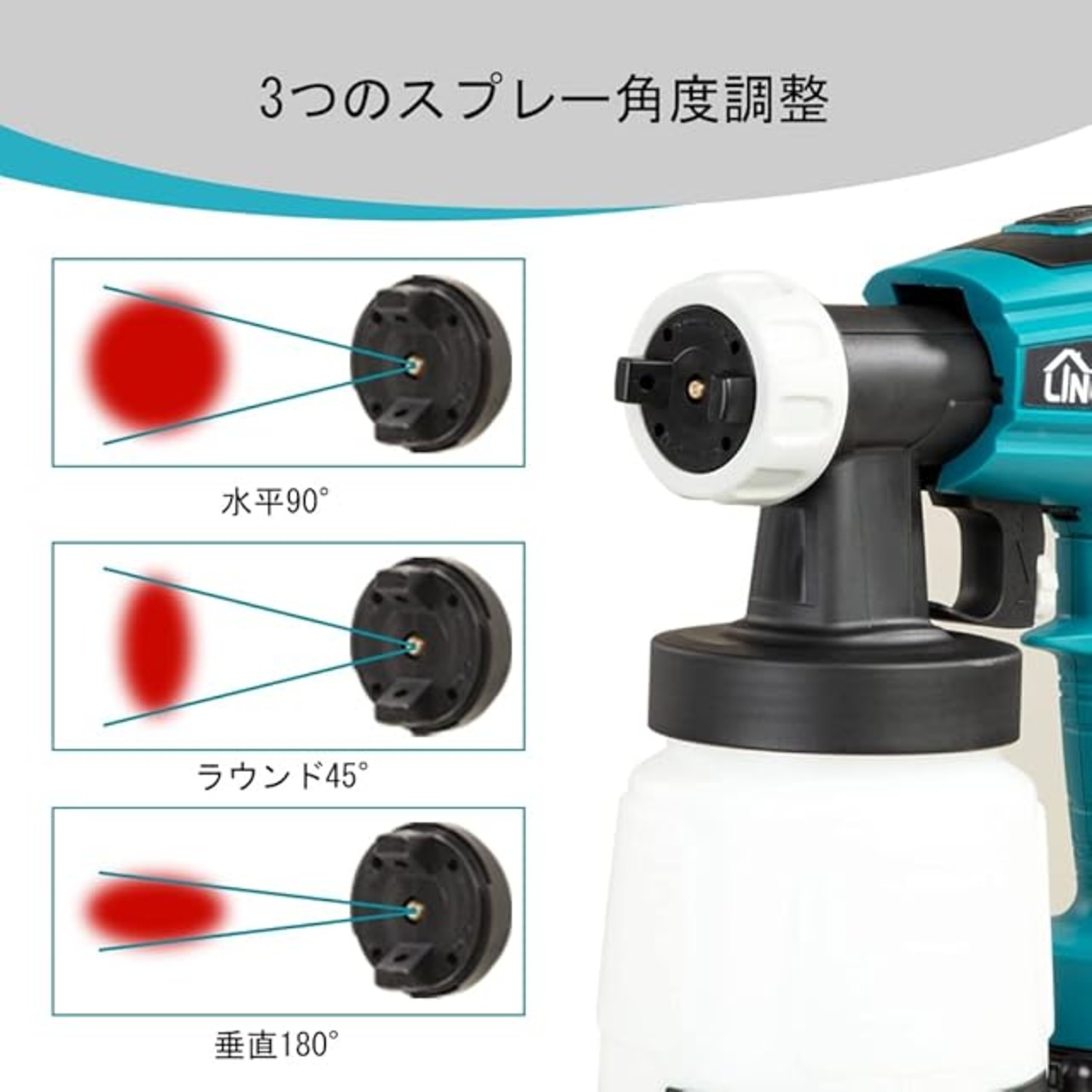 商品名:LINGYUE コードレススプレーガン 電動スプレーガン ペンキ屋くん 家庭用塗装ガン 3000mAhバッテリー1枚付属 18Vバッテリー対応 3つの銅ノズル 大容量800mlタンク付 3つの噴霧方法 【水平 垂直 丸型噴霧】 水性、油性、ラテックス塗料に適している DIY(PSE認証済み)…