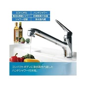 LIXIL(リクシル) INAX キッチン水栓 浄水器内蔵シングルレバー混合水栓 ハンドシャワー付 寒冷地用 [RJFー771YNA] (水栓 + 浄水カートリッジ 1本) 蛇口 PFAS/PFOS/PFOA除去対応 アルミニウム 樹脂 研磨 シルバー | emishop315