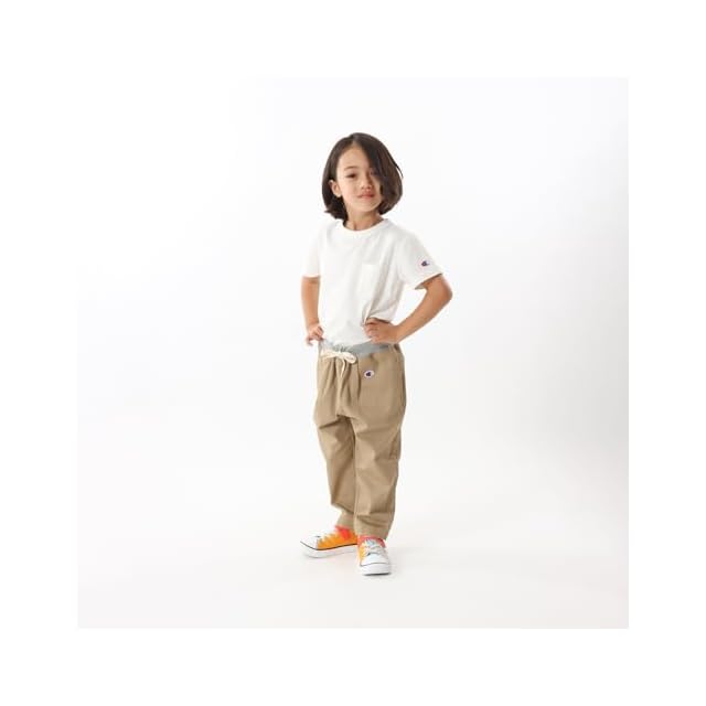 [チャンピオン] ロングパンツ キッズ 綿100% 両脇スラッシュポケット ワンポイントロゴ刺繍 ベーシック CK-Z202 ベージュ