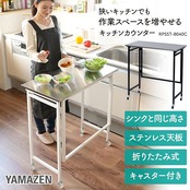 商品名:山善(YAMAZEN) テーブル キッチンカウンター 折りたたみ 組立カンタン (ステンレス天板耐熱温度 : 200度) 幅80×奥行40×高さ85cm テーブル ブラック RPSST-8040C(BK)
