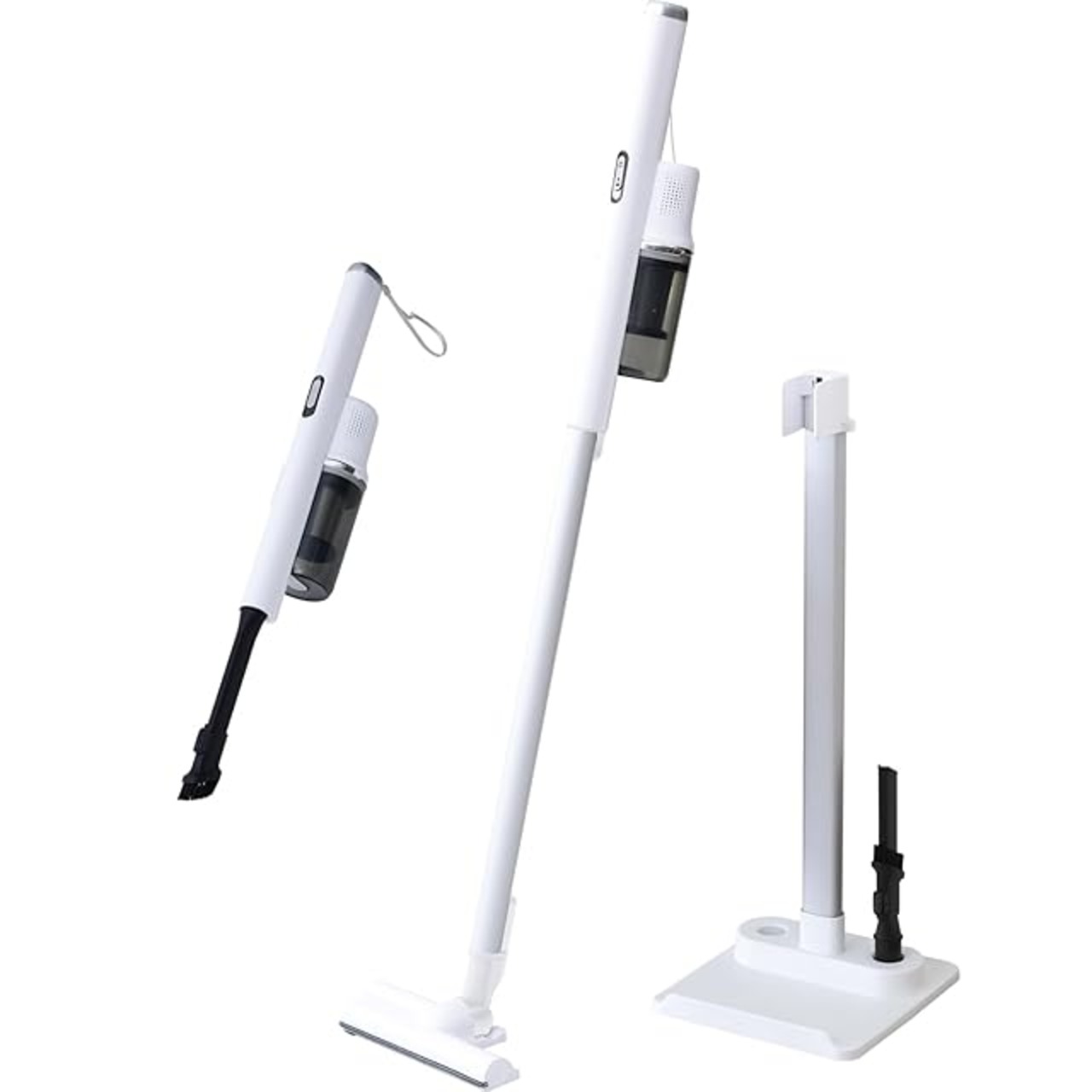 【商品仕様】◇本体サイズ:スティック時=幅21.2×奥行17.5×高さ104.5cm/ハンディ時=幅8×奥行11×高さ43cm ◇本体重量:スティック時=980g/ハンディ時=650g ◇充電アダプター:入力=AC100-240V(50/60Hz)/出力=DC18V 0.7A ◇充電時間:約3.5時間 ◇リチウムイオン電池:14.8V 2000mAh ◇連続使用時間:強=約11分/標準=約30分 ◇集じん容量:0.3L ◇充電コード長:約1.5m ◇付属品:ブラシ付きすき間ノズル、フロアノズル、延長管、充電アダプター、取扱説明書(書付き) ◇お買い上げ日より1年間(の範囲については、取扱説明書をご確認ください。(一般家庭用以外(業務用など)に使用された場合の故障及び損傷などは対象外となります))
