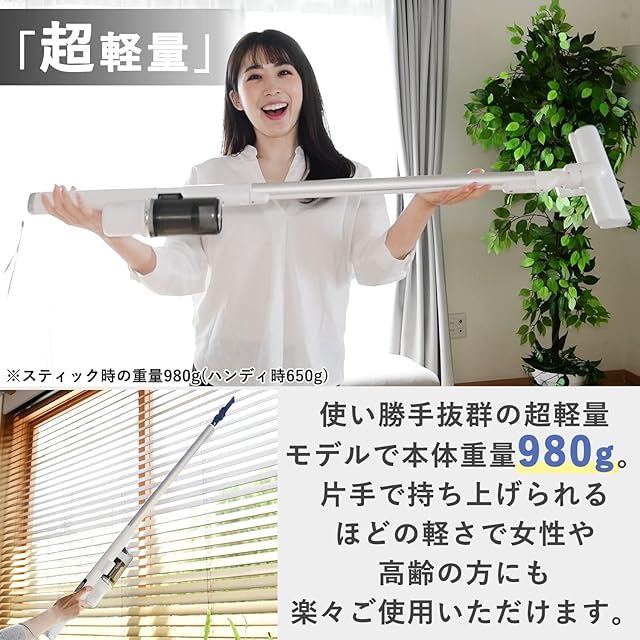 商品名:[山善] 掃除機 コードレス 軽量 980g スティック ハンディ 一人暮らし 充電式 サイクロン 自走式 パワーブラシ搭載 強力吸引 収納スタンド付き ホワイト ESP-SL600(W)