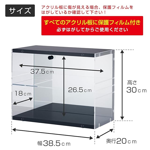 部材:天板・底板(MDF+メラミンシート)/背面ミラー仕様(MDF+メラミンシート)/側板(4mmアクリル)/扉部(3mmアクリル)/可動棚板(4mmアクリル)