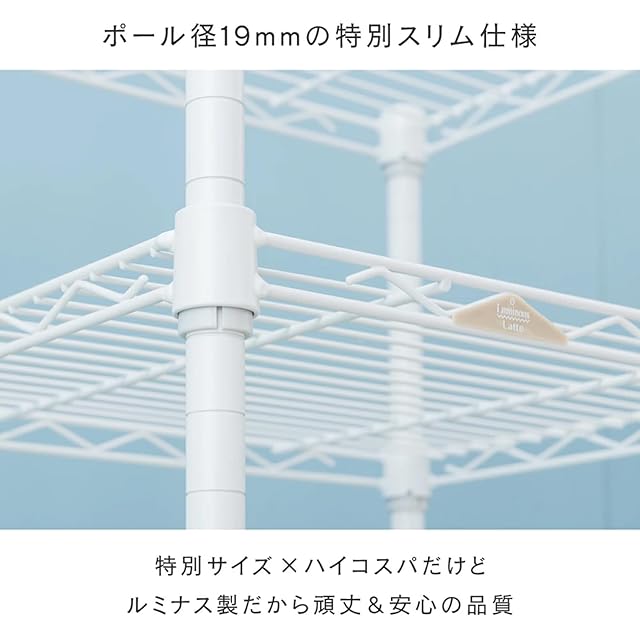 材質:棚板・ポール:スチール/スリーブ・アジャスター:ABS樹脂/天板:MDF