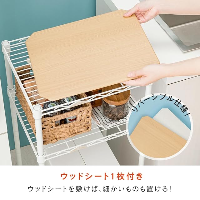 ドウシシャ ルミナス コンパクトキッチンラック 幅39.5cm×奥行34.5cm×高さ90cm 耐荷重80kg ルミナスラテ ポール径19mm キッチンラック2段 LL4090-2KW 天板ウッドシート付 ゴミ箱上ラック 炊飯器 作業台 キッチンカウンター | emishop315