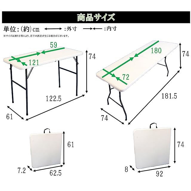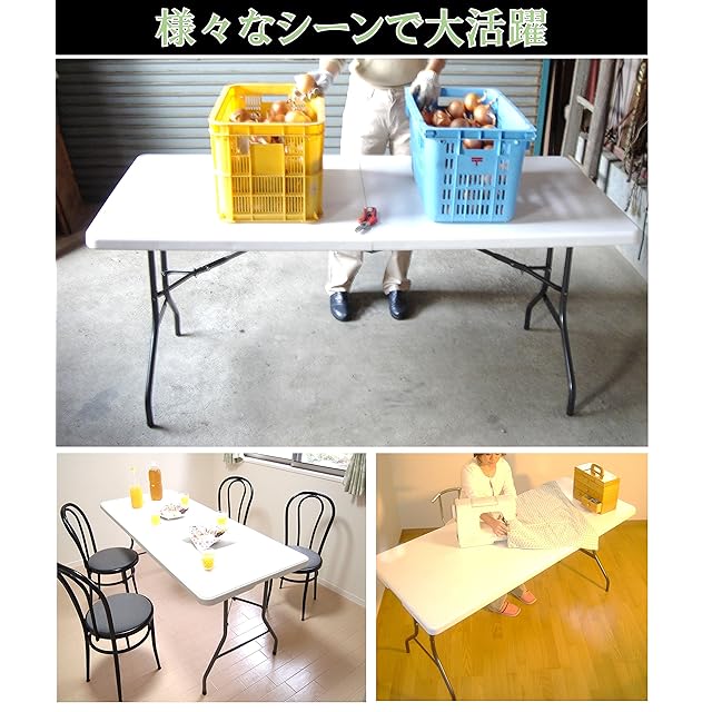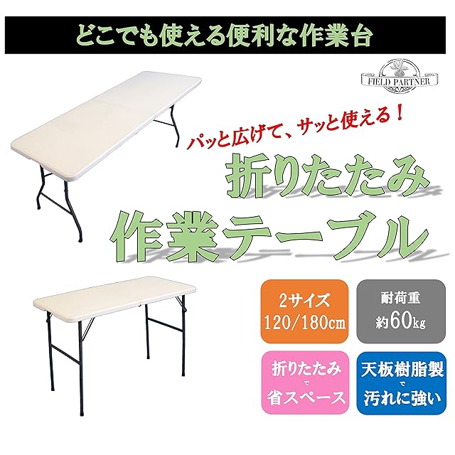 リビングアウト(Living Out) 折りたたみ作業テーブル 幅180cm 幅181.5×奥行74×高さ74cm 幅180cm 天板耐荷重:60kg 仕分け作業 ガーデニング 植木のお手入れ 強化樹脂製天板 持ち運びラクラク | emishop315
