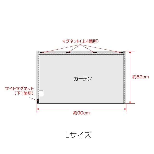 【Lサイズ】幅:約90cm、高さ:約52cm、マグネット:上4箇所/下1箇所、ワンボックス・ミニバンに最適!