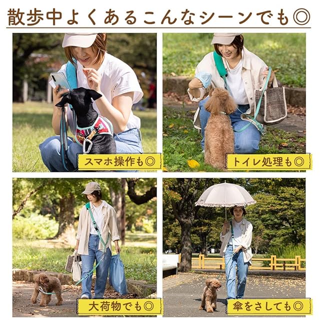 ■カラー:ブラック・カーキ・グレー・レッド・ブルー・ライトブルー・ティールグリーン・ライトグリーン・蛍光オレンジ・蛍光イエロー・蛍光ブルー ■サイズ:Sサイズ/リード幅約1.5cm、Mサイズ/リード幅約2.0cm ※以下共通 ■リード長さ/最短約80cm、最長約140cm、ショルダーベルト内周/最短約90cm、最長約140cm ■重量:Sサイズ/約230g、Mサイズ/約250g ■目安体重:Sサイズ/3-7kg前後の小型犬、Mサイズ/7-20kg前後の小型・中型犬 ■材質:ベルト/ナイロン、ショルダーパッド/オックスフォード生地、ポリエステル、カラビナ/アルミニウム、回転カン・Dカン/合金、アジャスター/プラスチック ■付属品:取扱説明書 ■製造国:中国