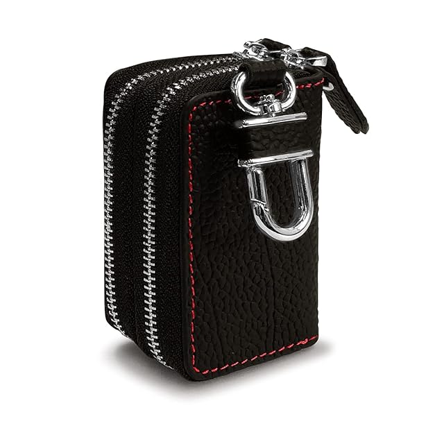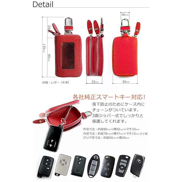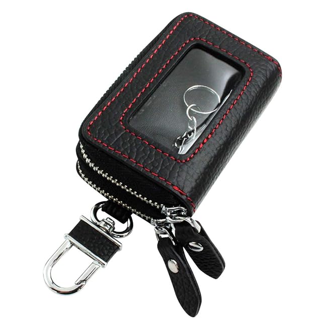 商品名:【AWESOME/オーサム】 スマートキーケース クリア窓付きダブルファスナータイプ ブラック×レッドステッチ ASK-CMW002R