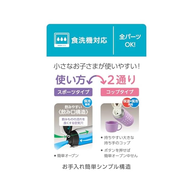 保温効力:(中せん使用時)72℃以上(6時間)/ 保冷効力:(キャップユニット使用時)9℃以下(6時間)