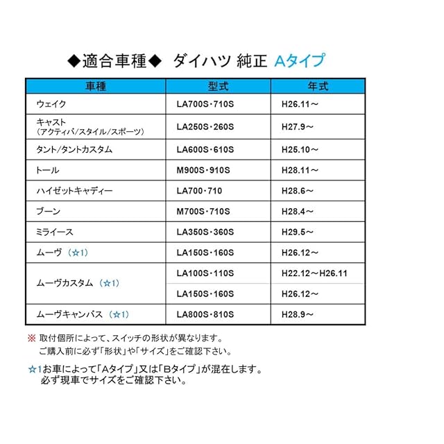 トヨタAタイプ※適合車種は画像でご確認下さい