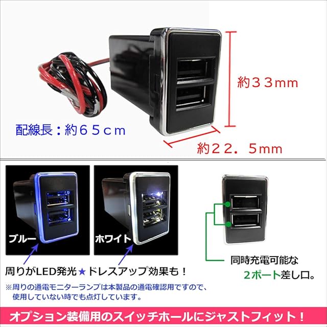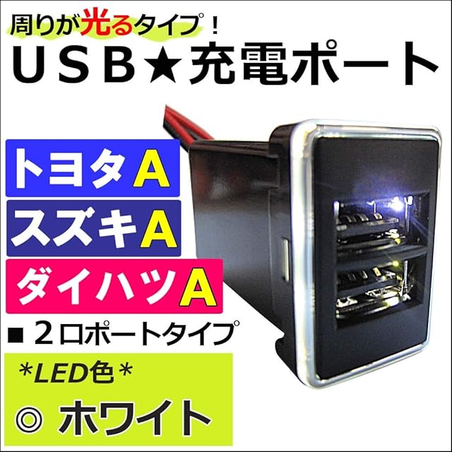 商品名:周りが光るタイプ 白 USB充電ポート増設キット USB2ポート トヨタA 社外品 ac449-W