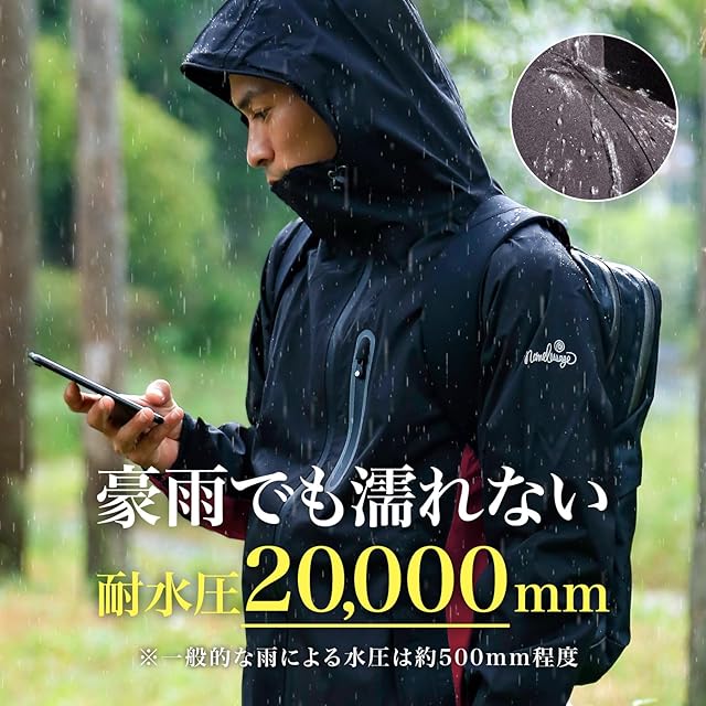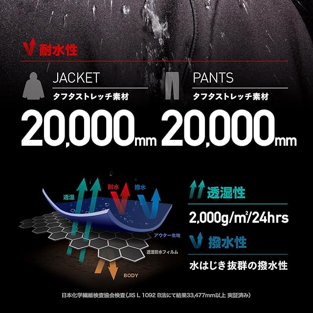 豪雨にも負けない驚きの耐水圧はなんと20,000mm!
