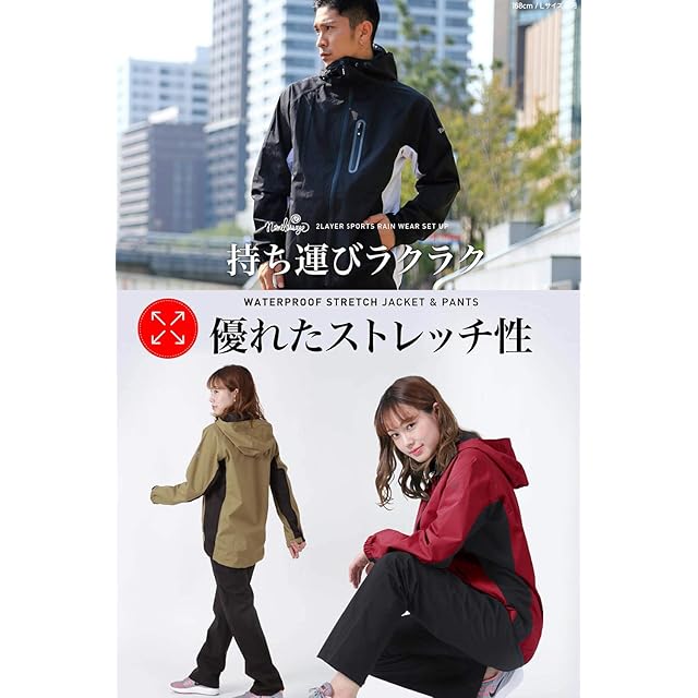 レインウェアには珍しい優れたストレッチ性でどんな動きも妨げない!アウトドア、BBQ、登山、釣り、自転車ウェアにも最適。