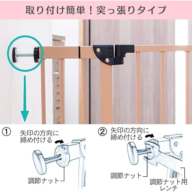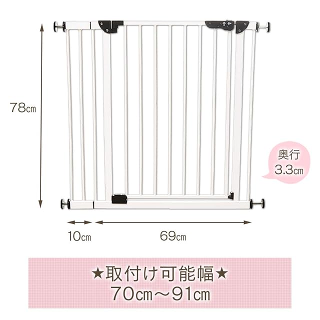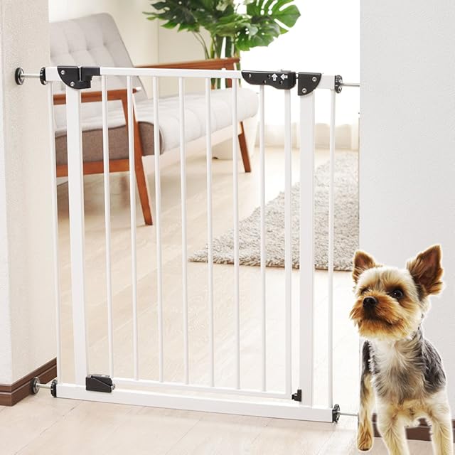 商品名:アイリスプラザ ペットゲート ベビーゲート スチールゲート ドア付き 突っ張りタイプ ホワイト 高さ78cm 設置幅70-91cm