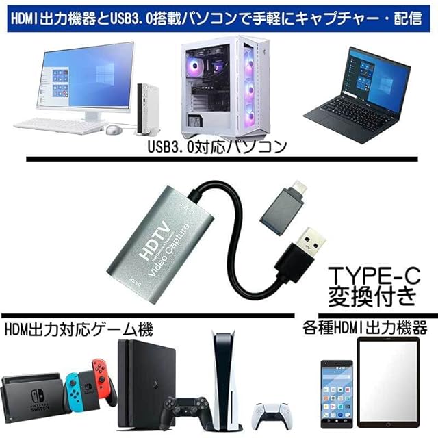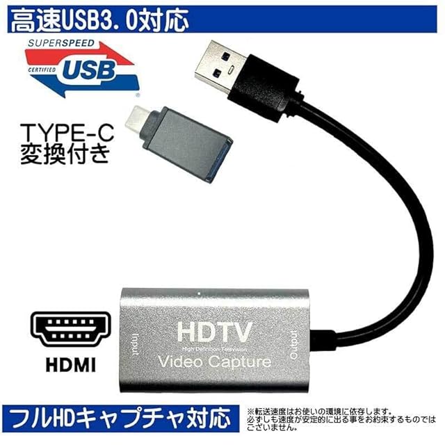 商品名:エスエスエーサービス TYPE-C対応 USB3.0対応 HDMI-USBビデオキャプチャーアダプター SU3-CHDTVC