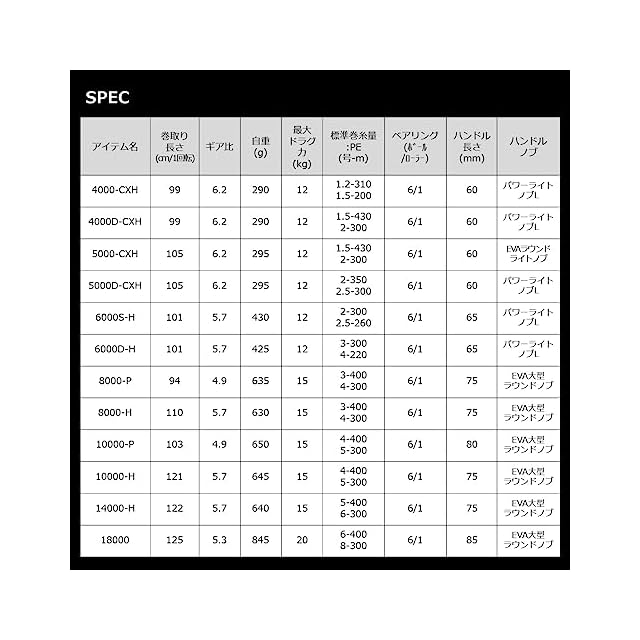ベアリング(ボール/ローラー) :6/1 / 標準糸巻量PE(号-m) :4-400、5-300