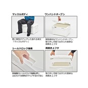 更に剛性がアップした座れる頑丈「マッスルボディ」 開閉便利なワンハンドオープン、取り外し可能でお手入れ簡単な両開き上フタ 新機構の「シールドロック機構」は押し込むだけで密閉性がアップするので安心 90度まわすだけで開閉簡単、手が汚れにくい跳ね上げ水栓付き