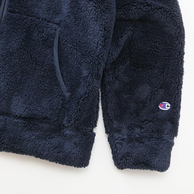 [チャンピオン] アウター ボアフリース スクリプトロゴ 刺繍 ハイネック ジップフーデッドジャケット C3-L616/C3-L616Z メンズ ネイビー