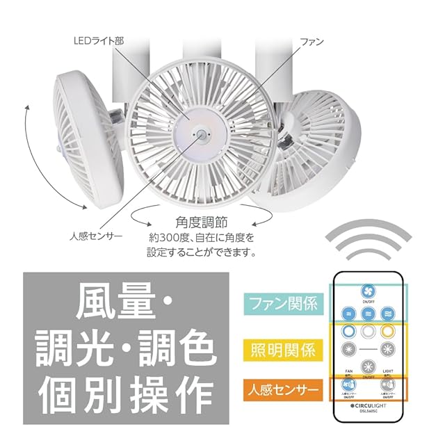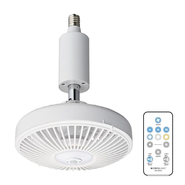 商品名:【E17電球ソケットモデル】 ドウシシャ サーキュライト ソケットシリーズ E17モデル 調色3段階 調光2段階 風量3段階 40W相当 人感センサー機能付き リモコン付き