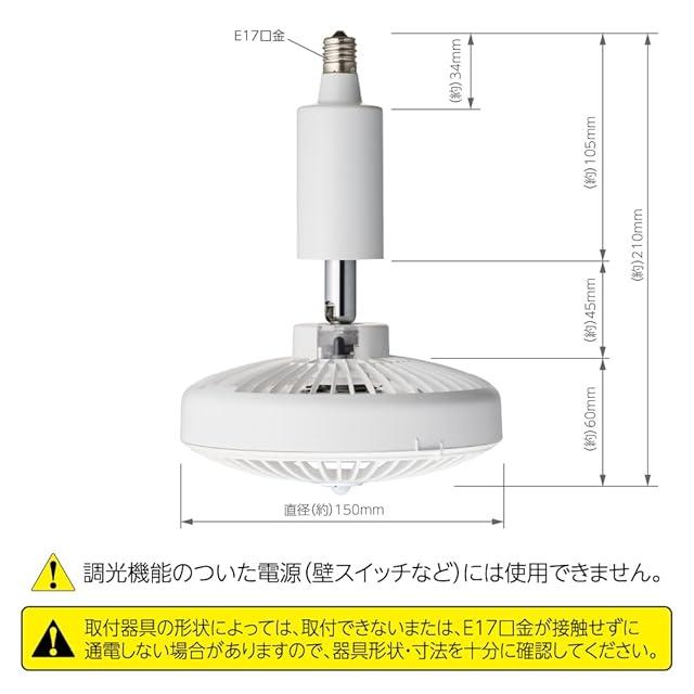 工具不要、かんたん取り付け。口金E17の器具であれば、電球を取り付ける要領で簡単に取り付けできます。工具やネジも使う必要がありません。お手入れ簡単。ファンガードは簡単に外す事ができて掃除が簡単です。(羽根は外すことができません)
