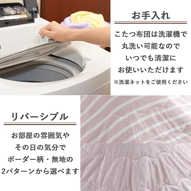 【専用布団セット】買ってすぐに使える専用布団付き。シンプルなボーダー柄なので飽きずに長く使え、汚してしまっても丸洗い可能なので、ご自宅で簡単にお手入れできていつでも清潔に気持ちよくお使いいただけます。※洗濯時は洗濯ネットをご使用ください