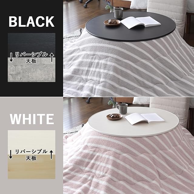 [山善] カジュアル こたつ テーブル 幅80cm 丸型 専用布団セット 一人暮らし リバーシブル天板 中間入切スイッチ 温度調節無段階 ホワイト LCR-80(WH/NA)-FSET