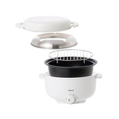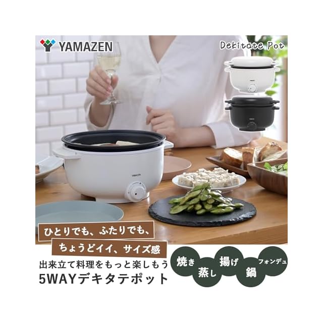 [山善] 電気鍋 グリル鍋 小型 卓上 一人用 5WAY (焼く/蒸す/揚げる/煮る/フォンデュ) デキタテポット 温度調整機能 着脱式 丸洗い可能 ホワイト YMCP-S650(W) | emishop315