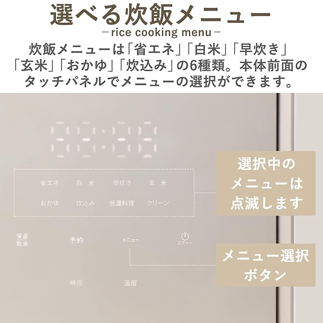商品名:[山善] 炊飯器 一人暮らし 4合 マイコン式 二人暮らし 3.0mm厚釜 低温調理 炊き分けメニュー6種 保温 予約 玄米 クリーニングモード搭載 グレージュ YJS-CM072(G)