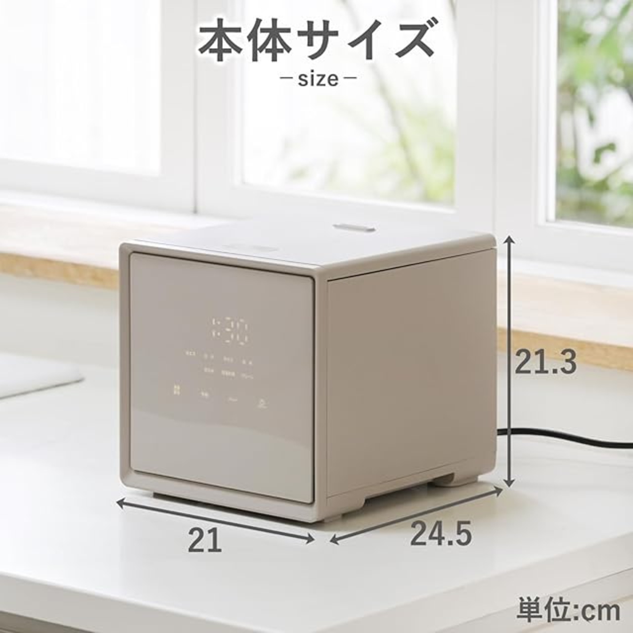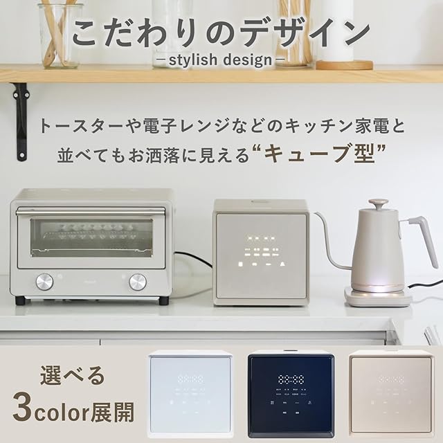 【お洒落な「キューブ型」】トースターや電子レンジなどのキッチン家電と並べてもお洒落なキューブ型。カップボードに並べてインテリアとしてもお楽しみいただけます。操作部はタッチパネルなので、汚れてもサッとふき取りできてお手入れも簡単です。